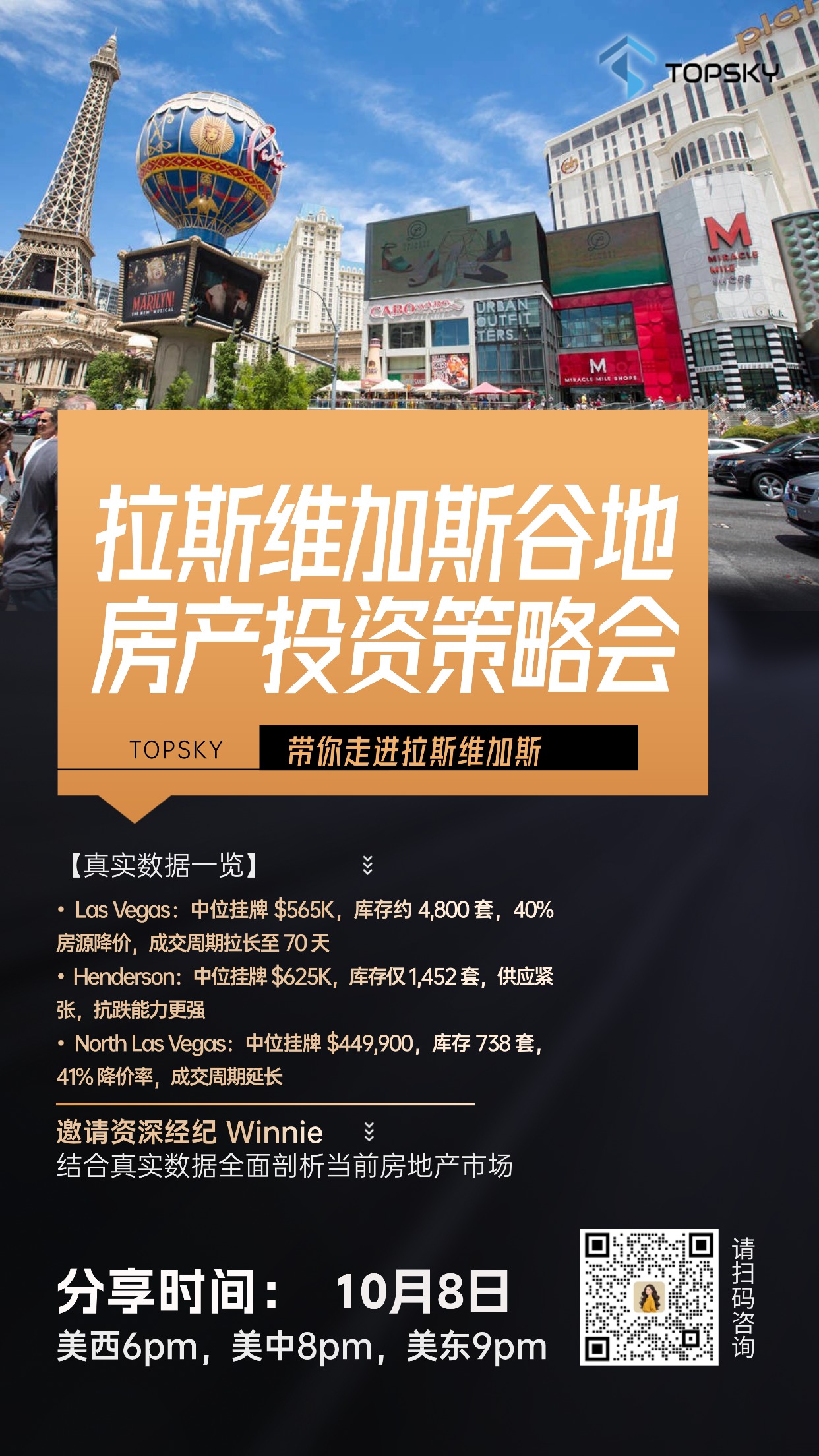 10月8号美西6pm 我们Vegas 团队将做一个精彩的分享,真实数据更新,并全面剖析当前租赁市场,欢迎大家来听