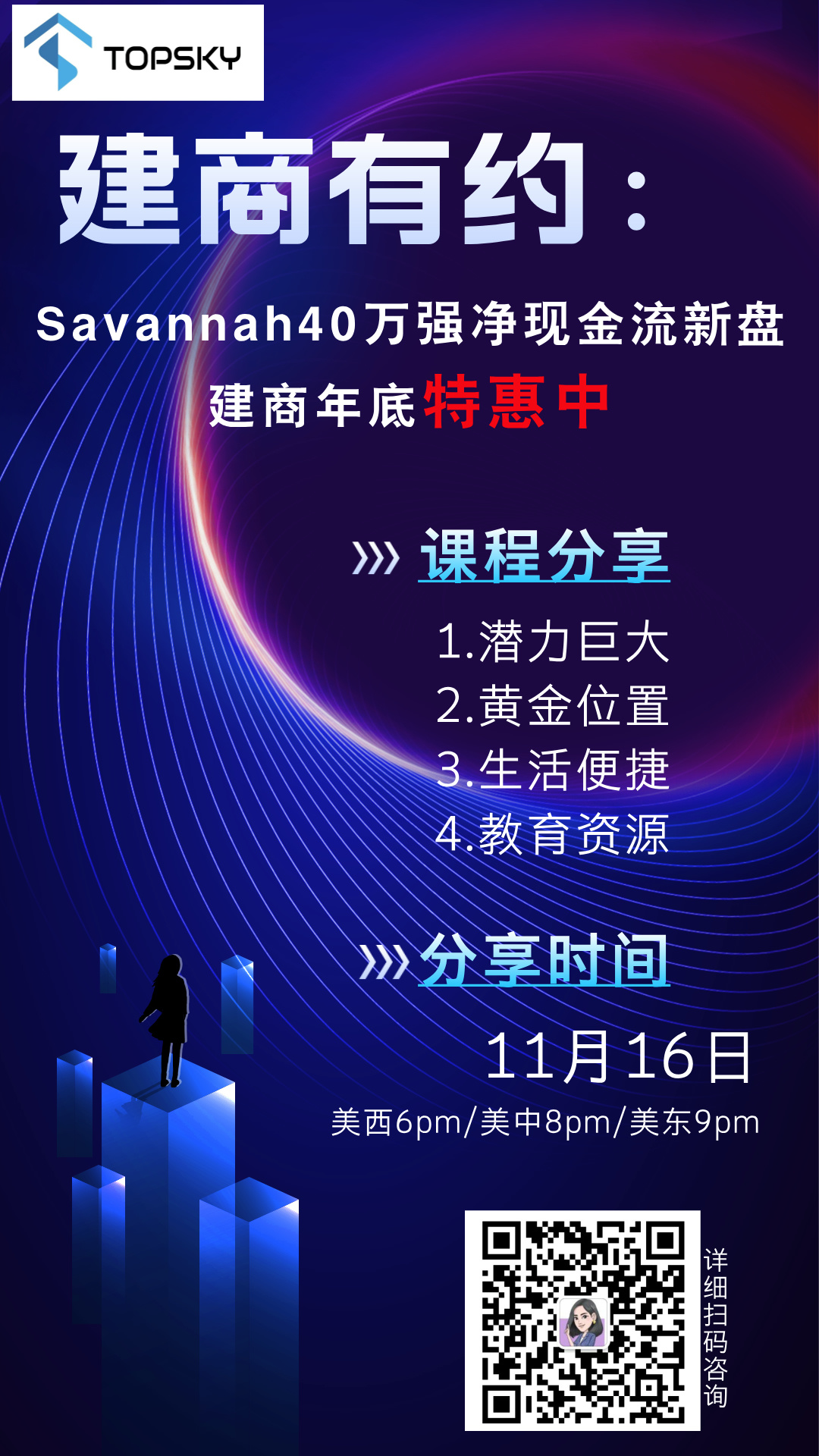 通知11月16号建商有约:Savannah40万强净现金流新盘