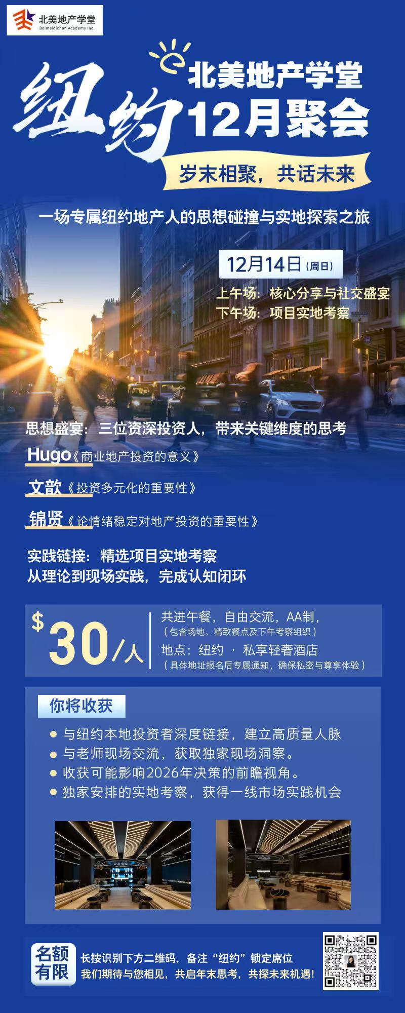 年底最重要的线下链接!12月14日(周日),北美地产学堂纽约聚会开启。