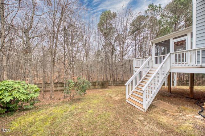 Step out onto the large screened-in porch and deck to take in the breathtaking views of the woods at Bond Park in Cary. This four bedroom cul de sac home sits on a 0.30-acre lot, backing up to serene wooded areas of Bond Park and Crabtree Creek. Just one door away, the Greenway trail offers easy access to Bond Park Greenway for relaxing nature walks. Enjoy stunning wooded views from the family room, kitchen, dining room, and bedrooms throughout the home. With 2,392 square feet, the spacious bedrooms provide a great floor plan. The community HOA offers amenities such as a pool, clubhouse, tennis courts, and a playground. There’s plenty of storage, including walk-in closets and attic storage on the second floor. The washer, dryer, kitchen refrigerator, and window treatments all convey. This home is being sold as-is as part of an estate sale, with no repairs provided. It is priced to account for any necessary updates or repairs. Attached is a plat, list of permits from Town of Cary, floor plans and Residential Property Disclosure.