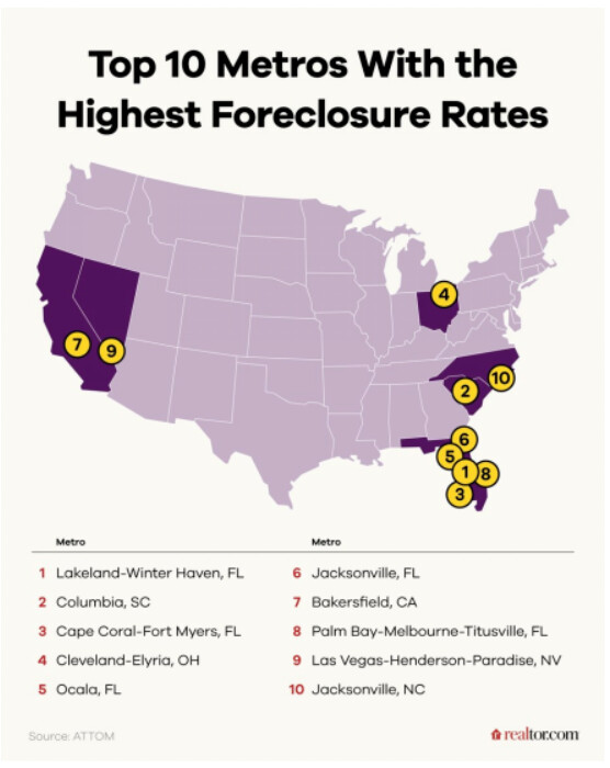 最近美国房地产市场 “止赎潮” 升温 ——2025 年第三季度全国 101,513 处房产收到止赎申请,同比涨 17%,Florida、South Carolina、Ohio 等都市区成重灾区。