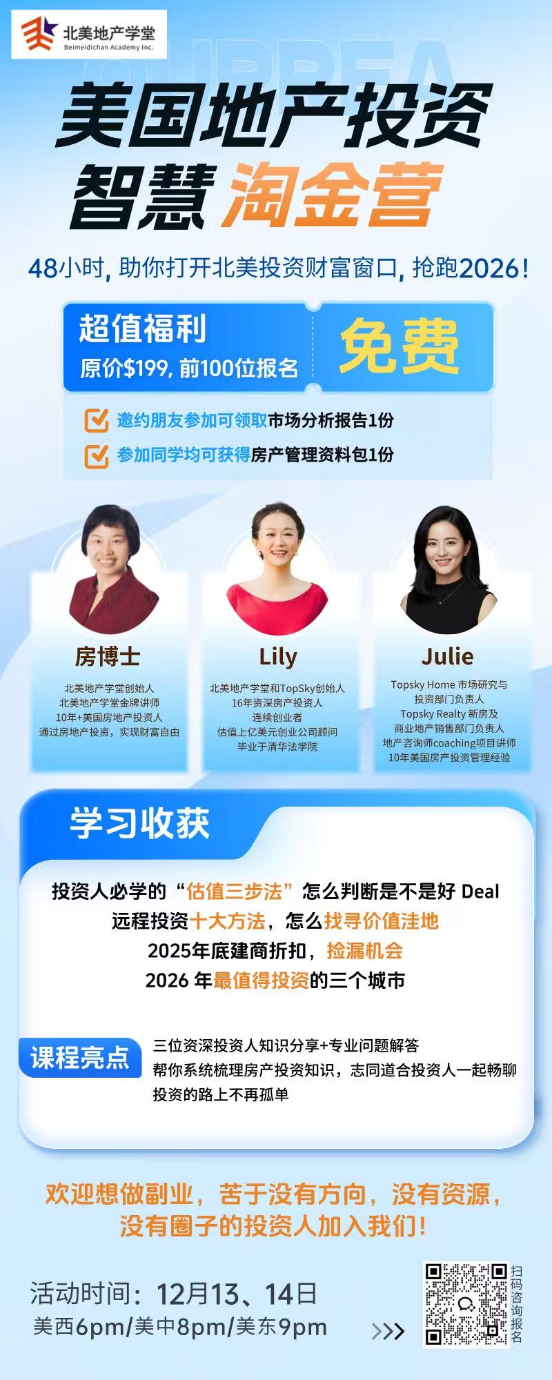 房博士、Lily、Julie三位老师直播答疑【美西13、14日晚6pm】