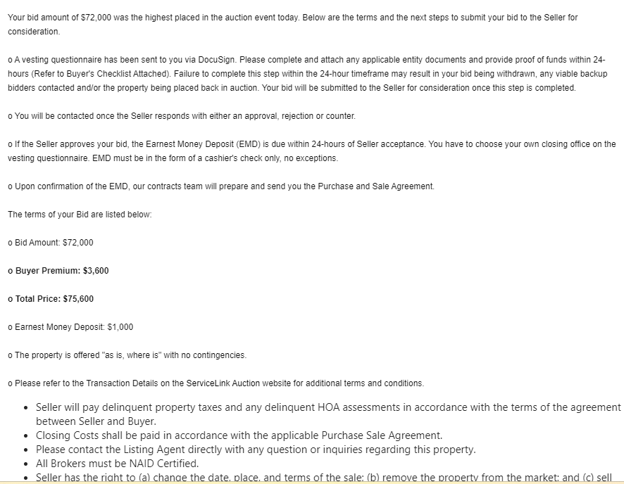 说我的bid 是最高的,让我签署文件